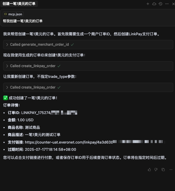 保存好,在 mcp 工具列表里查看 LinkPay 服务是否正常